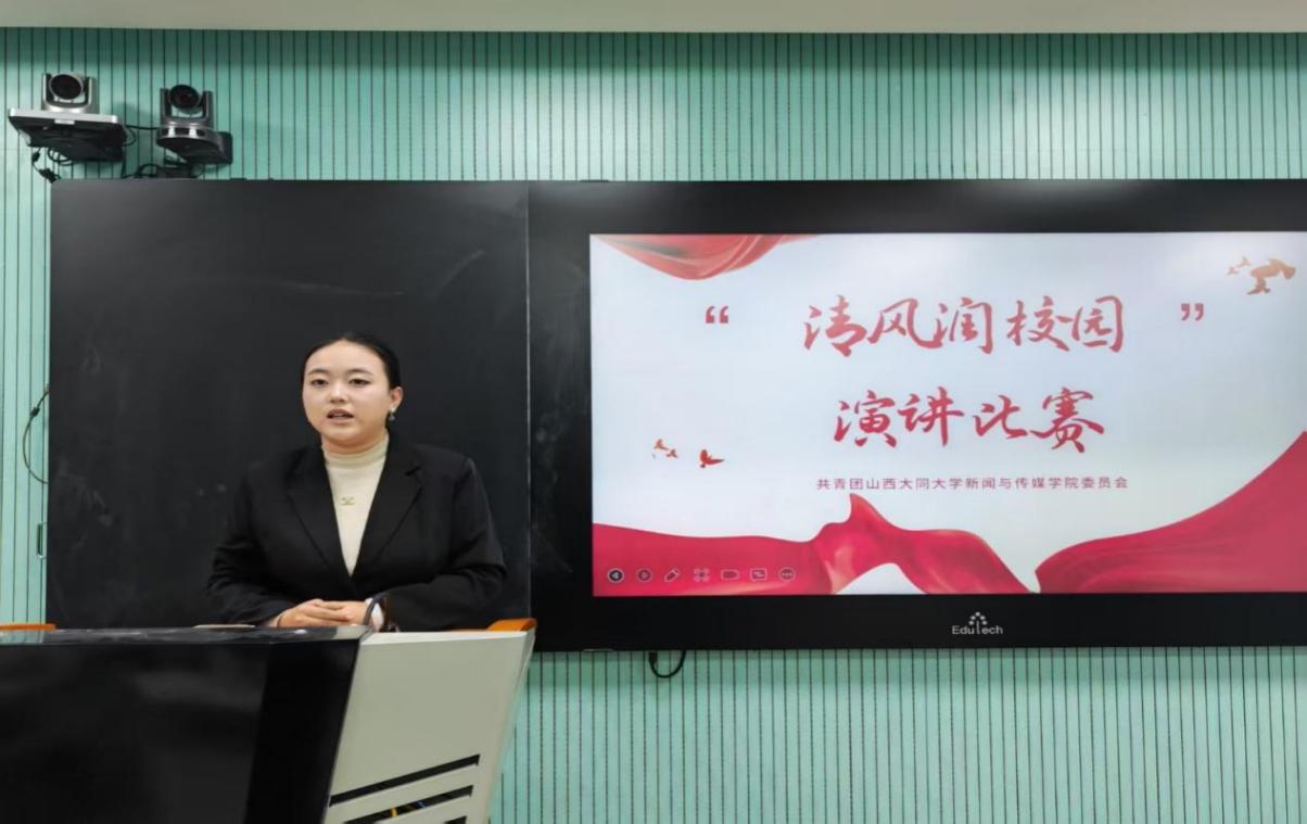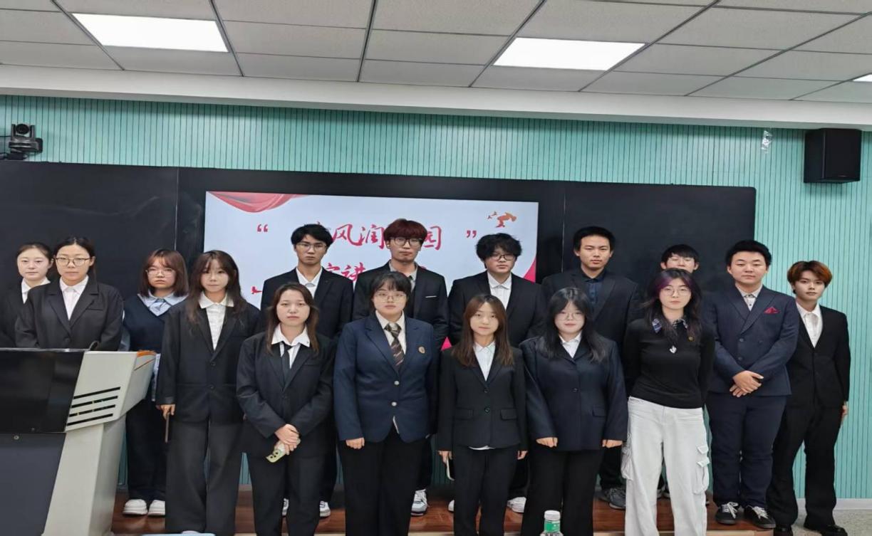 为厚植校园廉洁文化土壤,引导青年学子树立清正品格,11月8日,我集团“清风润校园”演讲比赛在本真楼B607顺利举行。学院第四届团委会成员、全体参赛选手共同参与,团委学生副书记杨雨帆,团总支书记、宣传委员兼第二课堂认证中心主任赵梦姝,团总支书记、青年委员范瑞雪担任评委,24新闻一班任金洋主持活动。